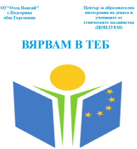 Приоритет 2. Реализиране на мерки за взаимодействие на образователните институции с родители, местни общности и местна власт с цел подобряване процеса на образователна интеграция и интеркултурно образование на децата и учениците от етническите малцинства и етнокултурните общности. Финансиран от Центъра за образователна интеграция на деца и ученици от етническите малцинства.